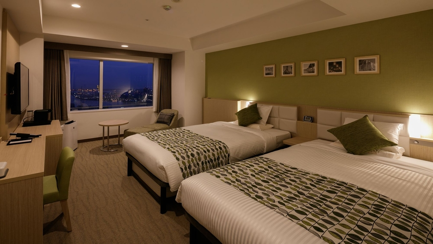 アートホテル大阪ベイタワーで最もスタンダードなお部屋が、スーペリアルーム。それでもフロアは23階以上なので、窓の外には大阪の街並みが広がります。スーペリアツインは広さ20㎡、スーペリアクイーンは15㎡とコンパクトめ。シティサイドとベイサイドで眺望が異なるため、予約の際にどちらの景色が見たいか確認しておくのがおすすめです。