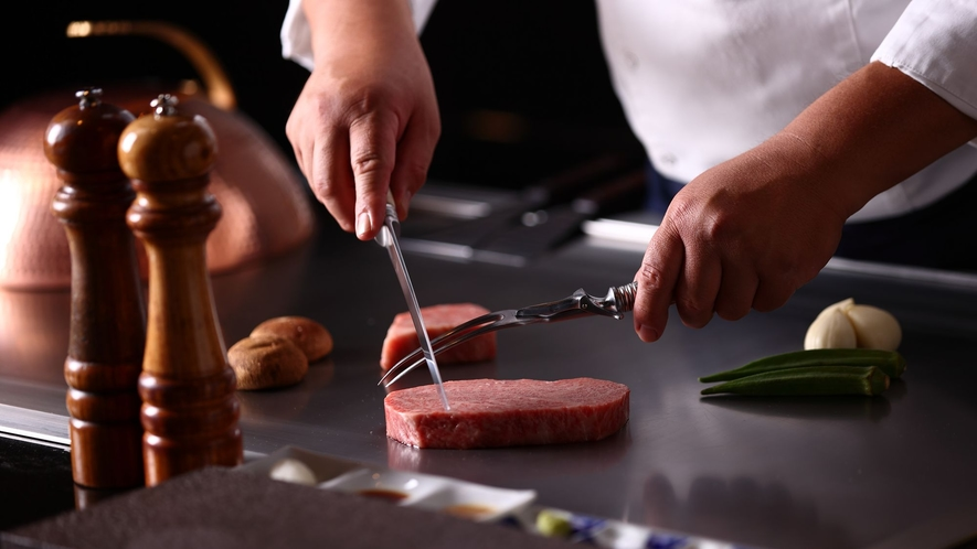別フロアには、こだわり食材を使った鉄板焼きレストラン「RURI」が。目の前で調理される迫力と香ばしい匂いは、特別な夜のディナーにふさわしい演出です。ステーキやシーフードを鉄板の前で存分に楽しめます。