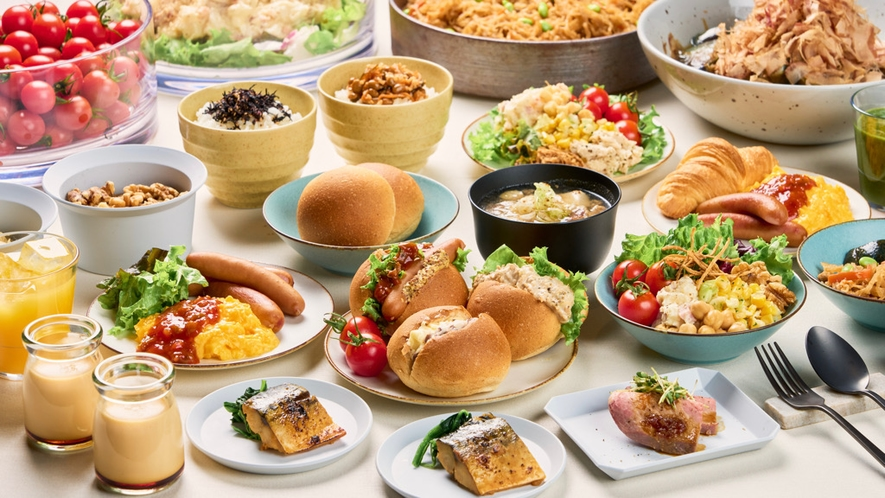 朝食のコンセプトは「新しい1日を健やかに送るための朝食」。ご飯とパンをどちらもおいしく食べることにこだわり、豊富なお供が揃っています。