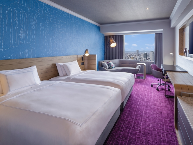 すべての客室から大阪市街地の眺望が楽しめるのも、このホテルならではの魅力です。高層フロアに泊まれば、夜になるとなんばの街が光の海のように広がる絶景を、部屋でゆっくり堪能できます。
